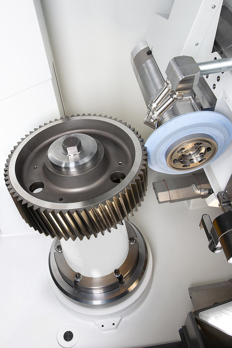 Demanding modifications can be produced highly efficiently and with minimal twist using 5-axis-interpolated grinding via an open swivel axis in double flank grinding mode.
