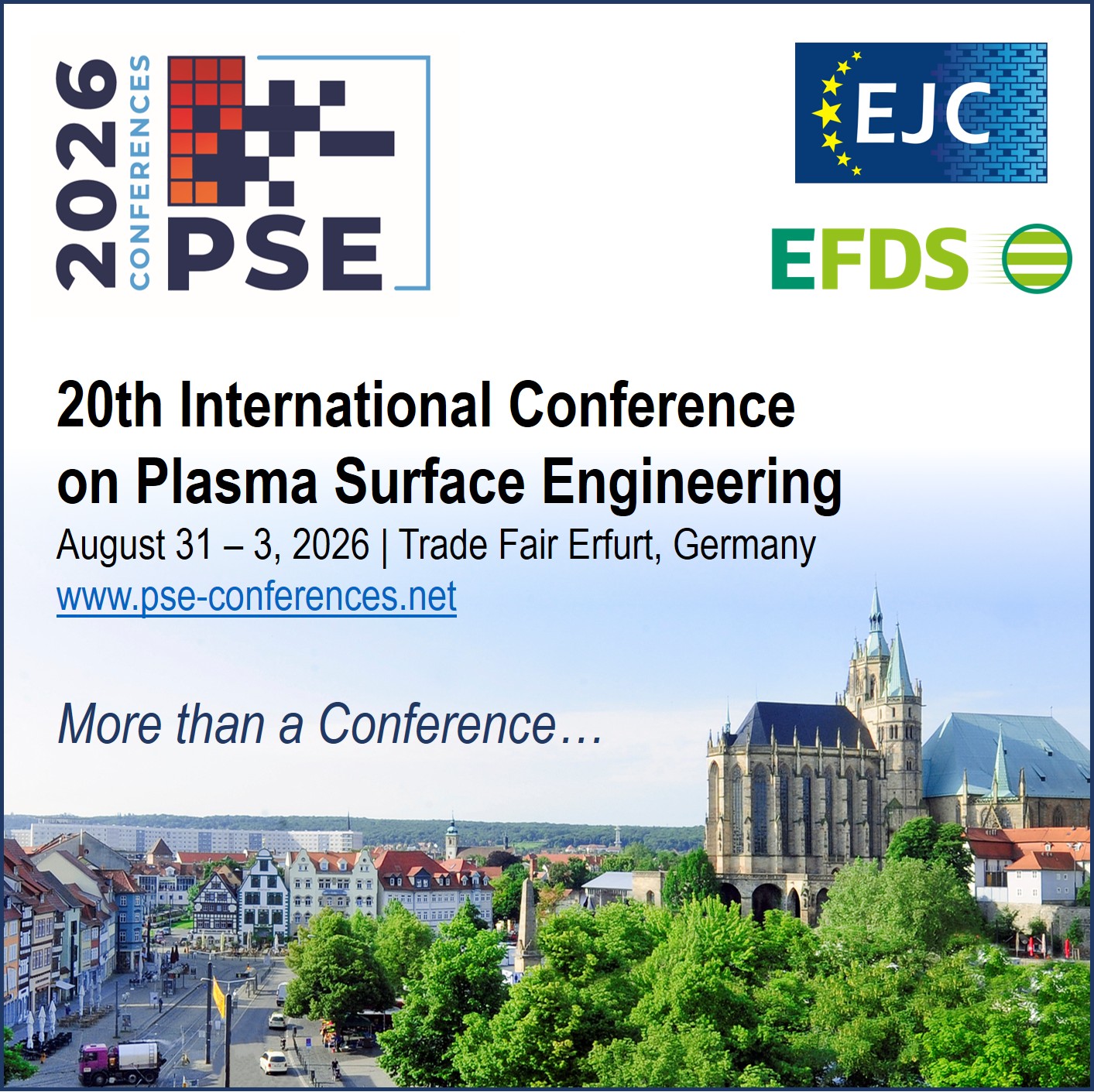 Die PSE Conferences (International Conference on Plasma Surface Engineering) gehört zu den international etablierten Fachkonferenzen für Forschung, Entwicklung und industrielle Anwendungen der Beschichtung, Plasma- und Ionenstrahltechnik. Auch die PSE 2026 bietet erneut eine zentrale Plattform, um aktuelle wissenschaftliche Erkenntnisse, technologische Entwicklungen und industrielle Anwendungen im Bereich der Plasmaoberflächentechnik zu präsentieren und zu diskutieren.