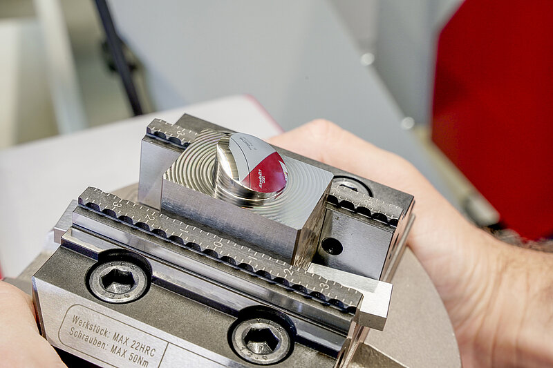Was eine Maschine kann, zeigt sich erst bei komplexeren Geometrien. Durch die hohe Bahngenauigkeit der RPTMaschine ist es jetzt möglich, optische Oberflächen auch deutlich schneller herzustellen. So wurde eine konvexe Fläche mit 20 mm Durchmesser in nur 120 Minuten hergestellt. Die Obefläche mit Ra < 10 nm kann sich im wahrsten Sinne des Wortes sehen lassen.