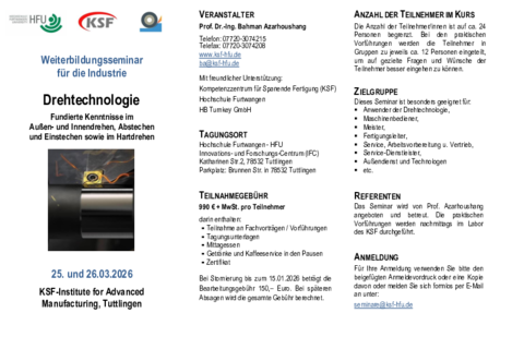 Weiterbildungsseminar für die Industrie Drehtechnologie Fundierte Kenntnisse im Außen- und Innendrehen, Abstechen und Einstechen sowie im Hartdrehen VERANSTALTER ANZAHL DER TEILNEHMER IM KURS Prof. Dr.-Ing. Bahman…